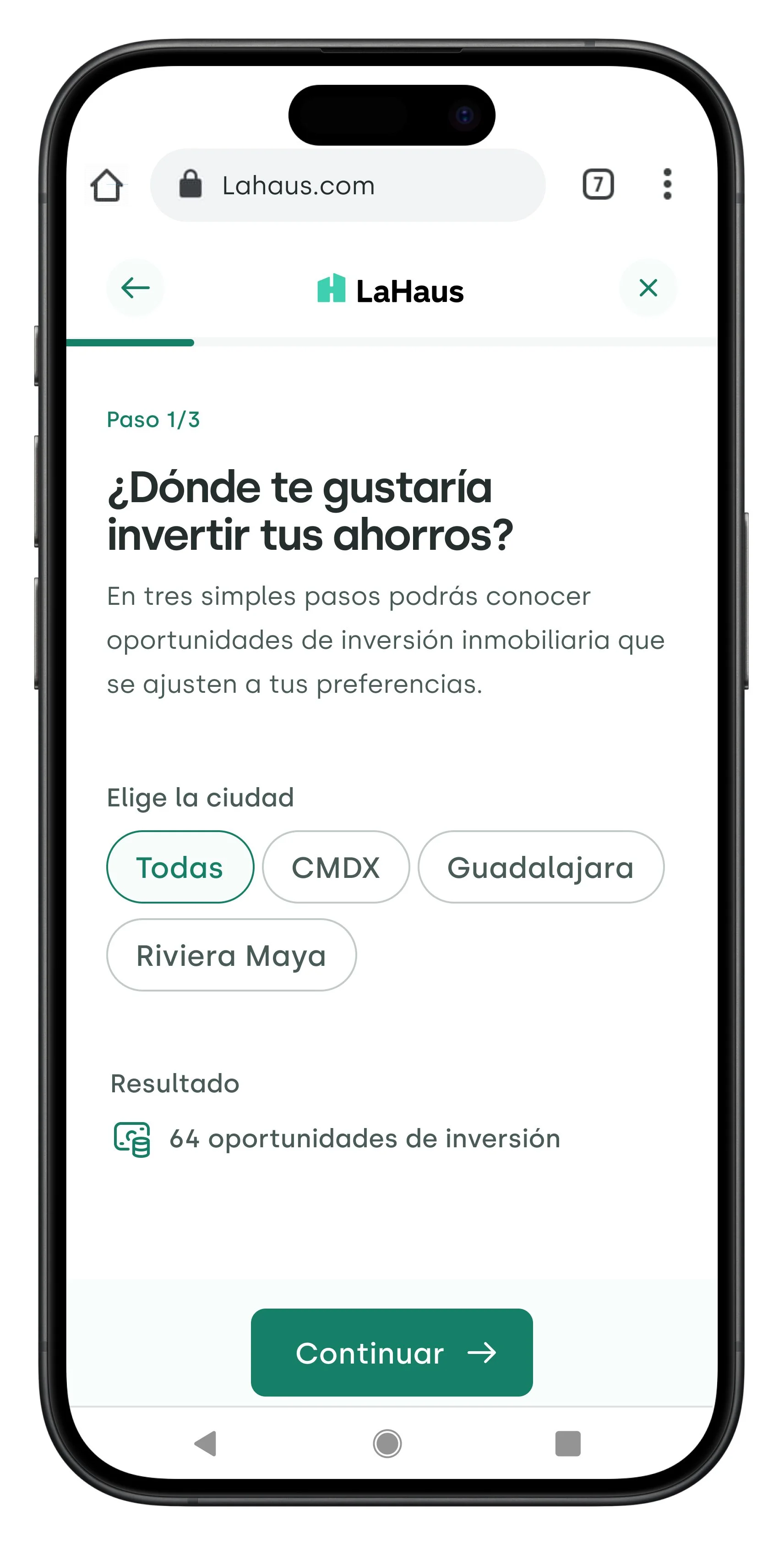 Experiencia de filtros simple enfocada a las necesidades de los usuarios. Nuestros usuarios desean saber rápidamente a cuáles oportunidades de inversión pueden acceder de acuerdo a su capacidad de pago (ahorros y pagos mensuales).