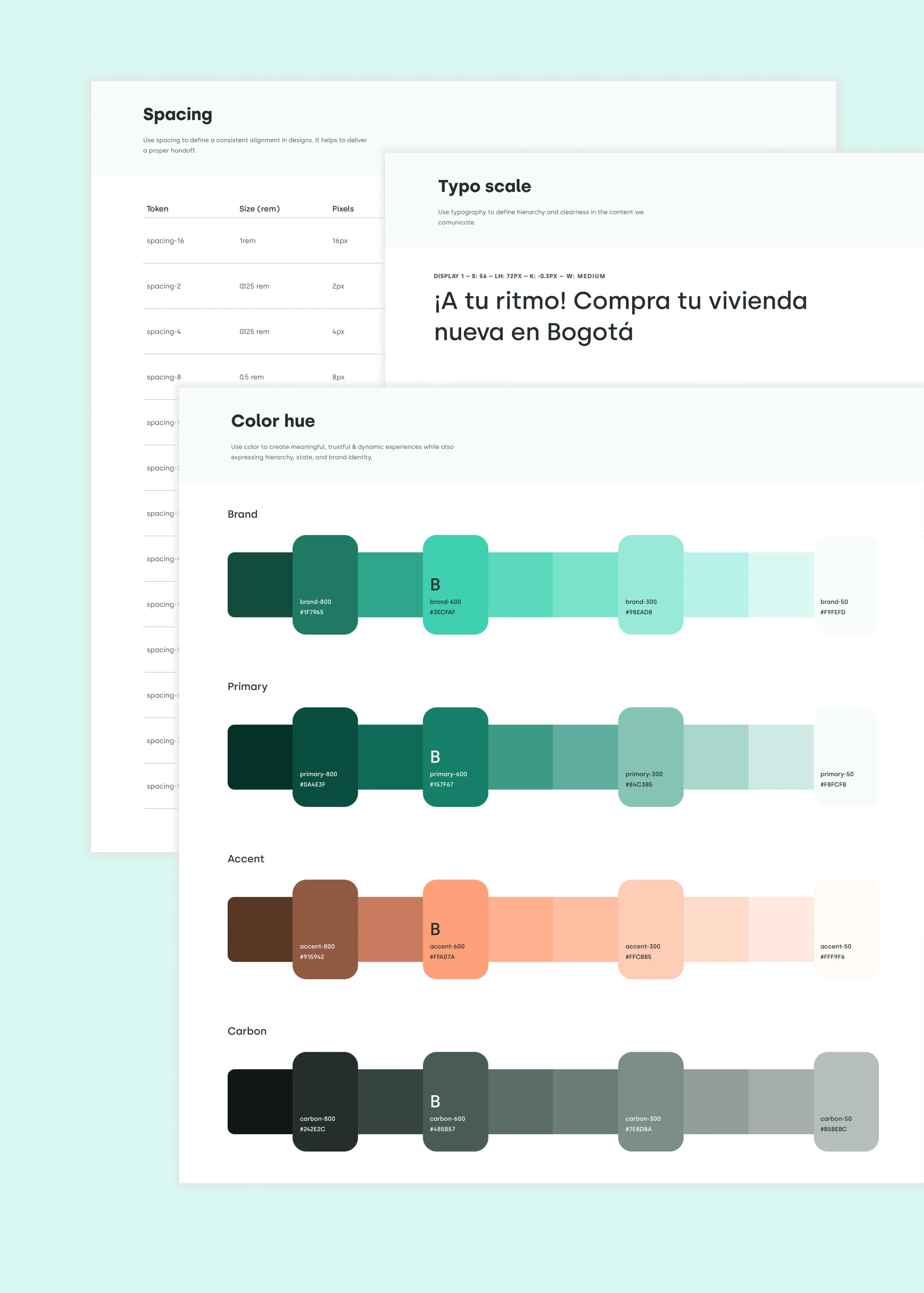 Establecimos los fundamentos de Roomie, que incluyen tipografías, paleta de colores, espaciado, grids y elevaciones.