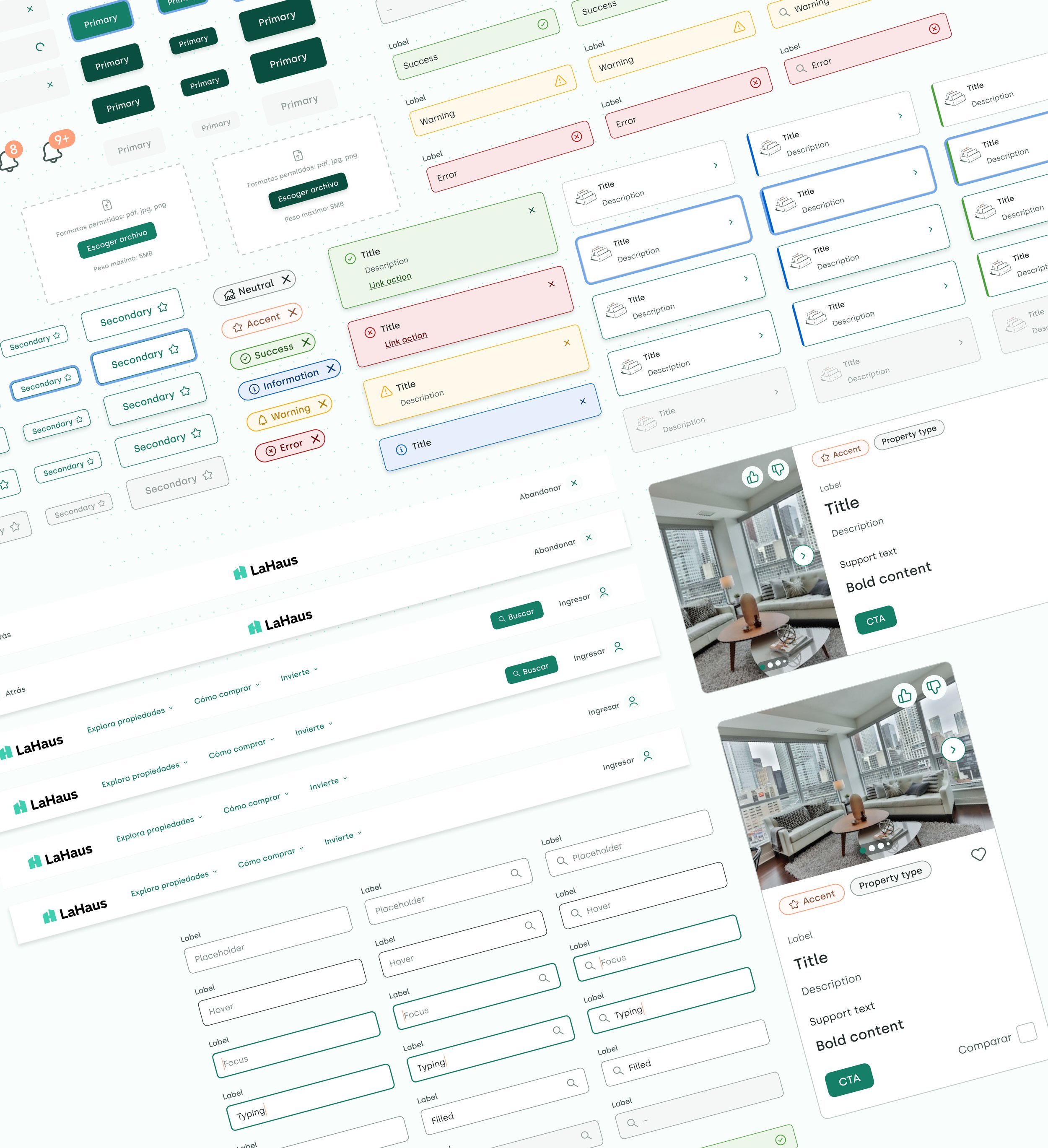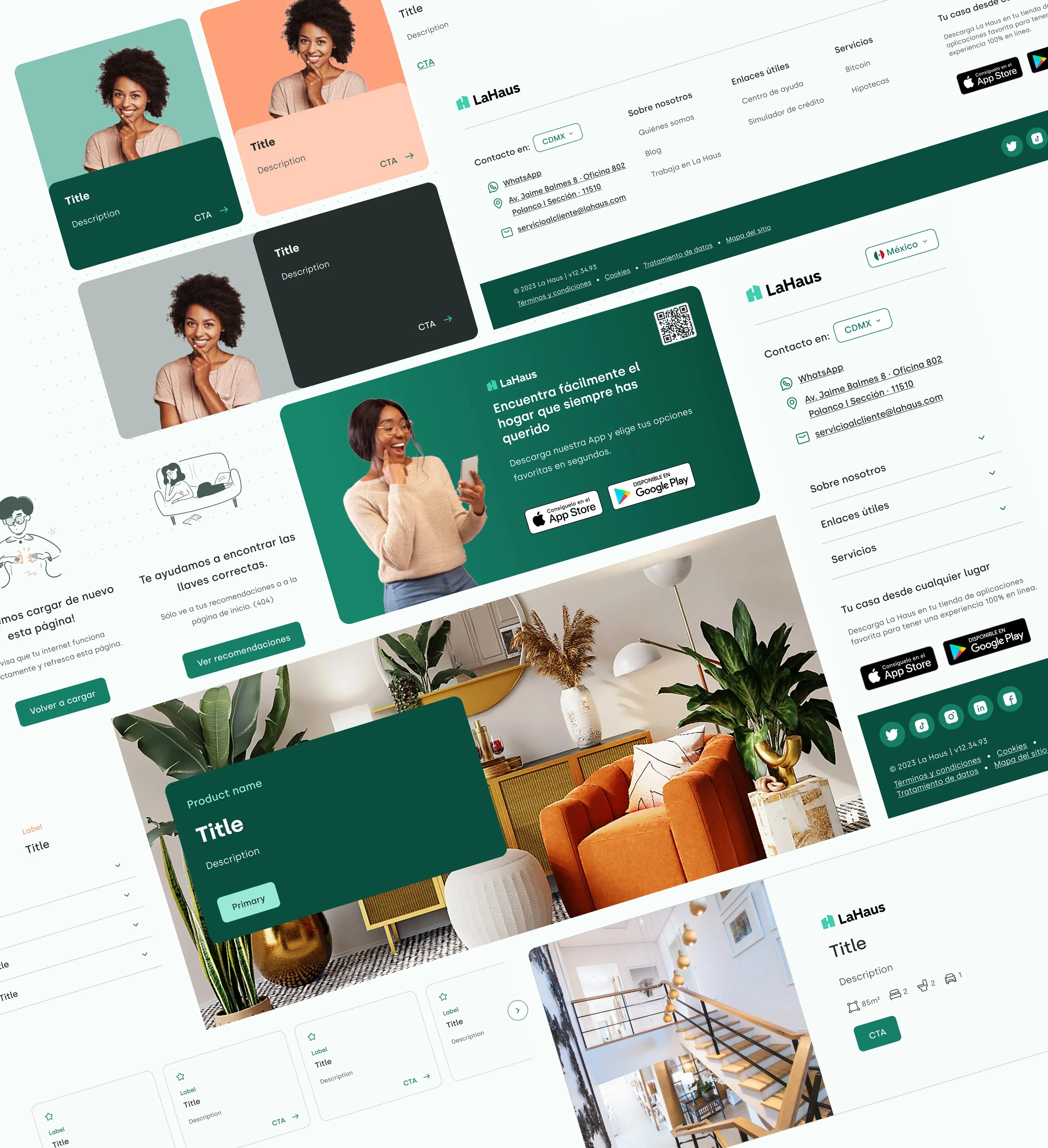 Diseñamos organismos como cards especiales para mostrar benefits and features, empty states, FAQs, propiedades featured, heros, módulo de data, entre otros.